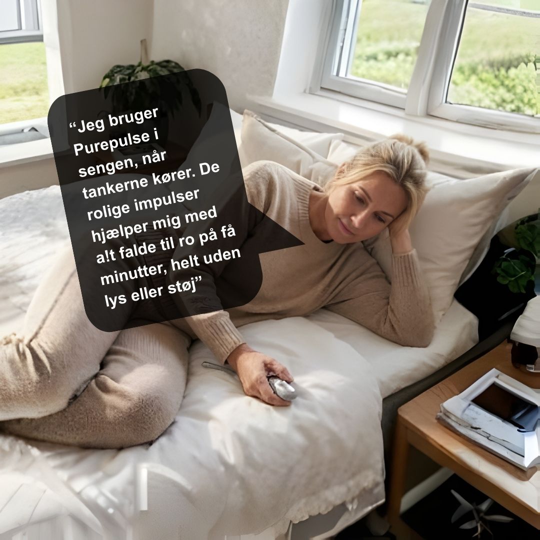 Det fungerer ved at sende lav-intens mikro-strømme, som stimulerer nervebaner og hjælper kroppen med at skifte til en mere afslappet tilstand. En simple, non-invasiv løsning til dig, der vil føle dig mere rolig og klar til hvile.
